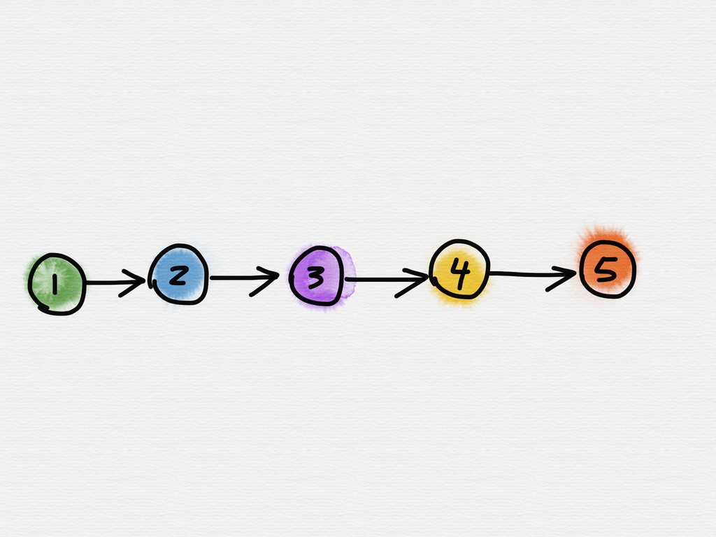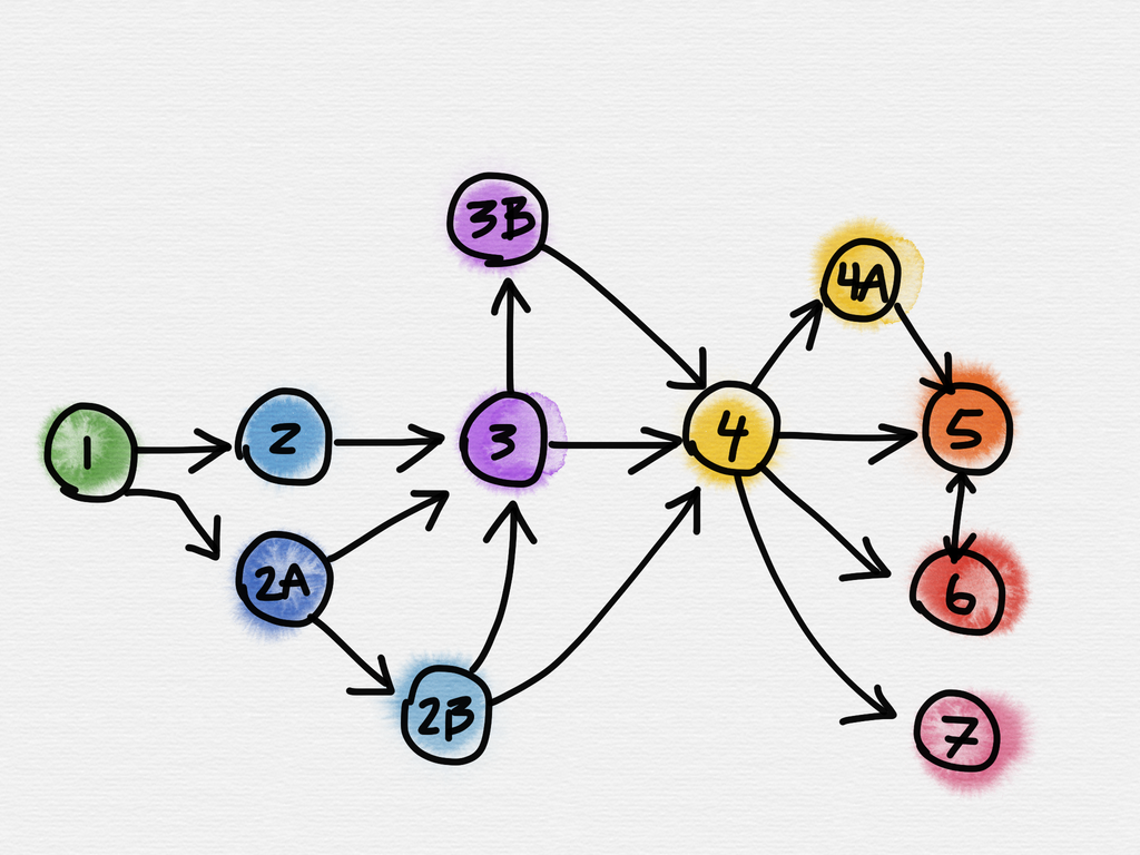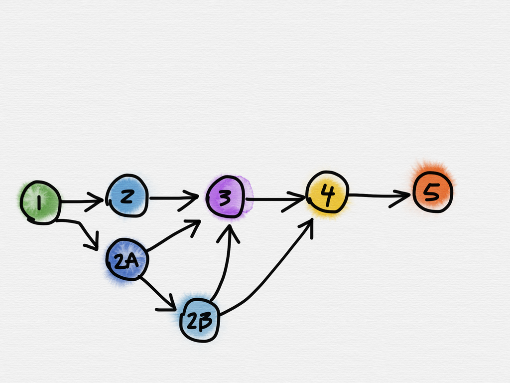Your first pass at drawing out your gameplan will usually progress in a linear fashion: “here’s how I start, and here’s how I get to the finish”. We are not worried about problems yet.