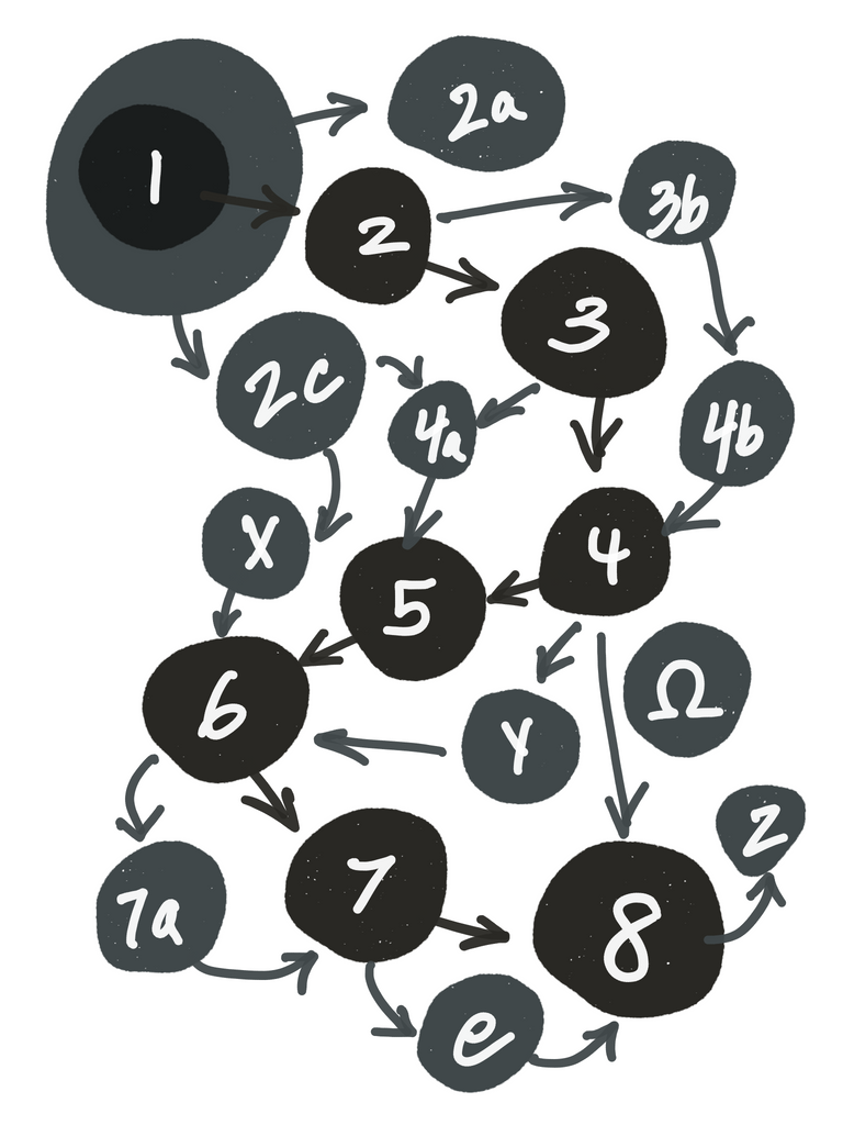 Looking back on a match and mapping out all the potential forks in the flowchart gives you a crazy looking map like this: